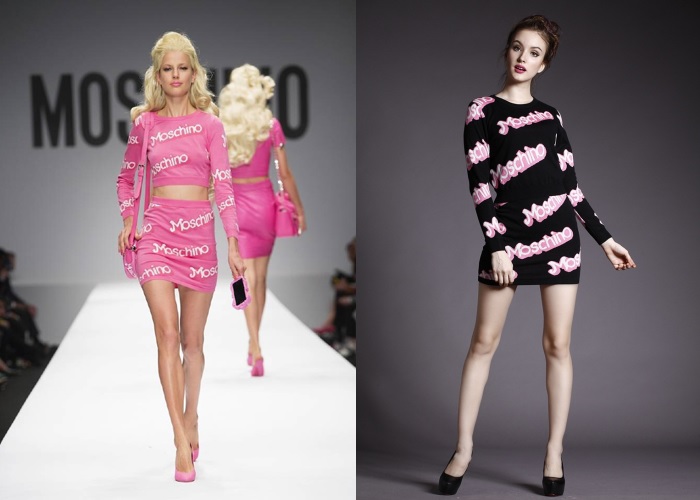 Одним из самых популярных костюмов - костюм Москино "Барби". Это, фактически, квинтэссенция его работ. Он как-бы говорит "Посмотрите на всех этих кукол, одинаковых и искусственных снаружи и пустых внутри. Посмотрите и улыбнитесь. Насмехайтесь над ними, ведь Вы - личность, которая и выглядит соответственно, а не как они". Этот дерзкий и нахальный костюм, когда вышел в мир, вызвал огромную волну обсуждений. Однако костюм просто "разлетался" в бутиках всего мира. Первая коллекция разошлась всего за 3 дня, что произвело фурор в мире моды.
