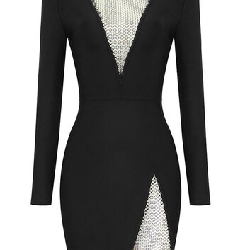 Данное платье будет уместно на любой светской вечеринке. Девушка в нем будет выглядеть очень красиво и постоянно будет ловить на себе восторженные взгляды. Модель сделанная в облегающем фасоне из качественной бандажной ткани. Застегивается сзади молнией. Спереди украшена глубоким вырезом декольте и еще одним разрезом на ноге. Эти открытые участки также декорированы тонкой сеточкой, украшенной стразами, которые очень эффектным переливаются.