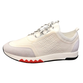 В этих белых кроссовках от Hermes мужчина будет всегда чувствовать себя максимально комфортно. Они являются очень практичными и хорошо сочетаются с одеждой в спортивном или casual стиле. По бокам выполнены из плотного текстильного материала с вязаными узорами, благодаря которому обладают отличной воздухопроницаемостью. На верхней части оснащены эластичной манжетой, которая позволяет им плотно обхватывать ногу и не спадать по время ходьбы. Также кроссовки имеют упругую подошву правильной анатомической формы.