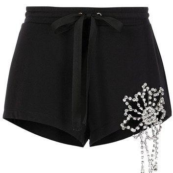 Шорты с шикарным декором из страз Area – гарантия вау-эффекта! Эту новинку оценят все, кто обожает креативные вещи. Шорты из плотного хлопкового трикотажа отлично сохраняют форму. Посадка классическая. Силуэт прямой. Длина шорт – короткая. несомненная фишка модели – декор в виде цветка, созданный из страз.